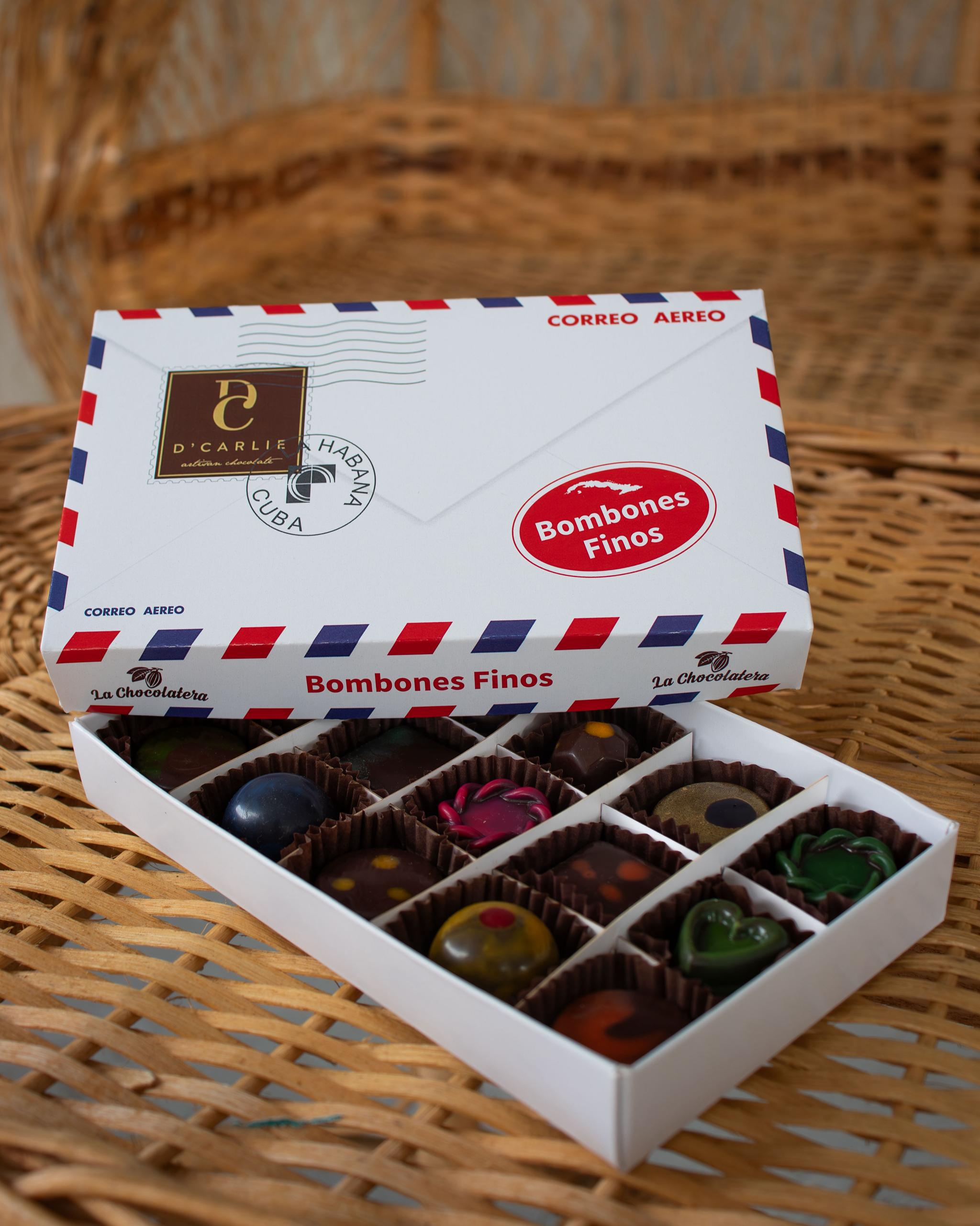 Estuche de bombones finos artesanales rellenos variados….15 unidades